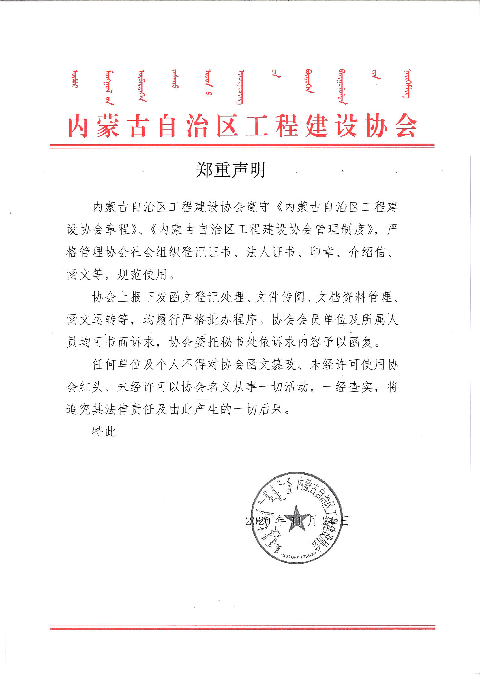 鄭重聲明
