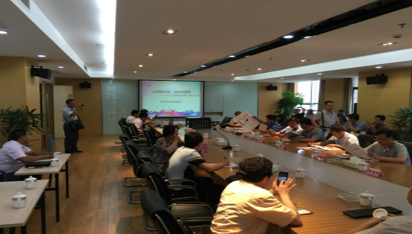 在參觀完“九州花園”項(xiàng)目以后,還在工地現(xiàn)場聽取江蘇武進(jìn)建工集團(tuán)才良分公司張錦華同志簡單介紹該項(xiàng)目中“BIM”技術(shù)的應(yīng)用及平臺軟件使用的簡單演示。