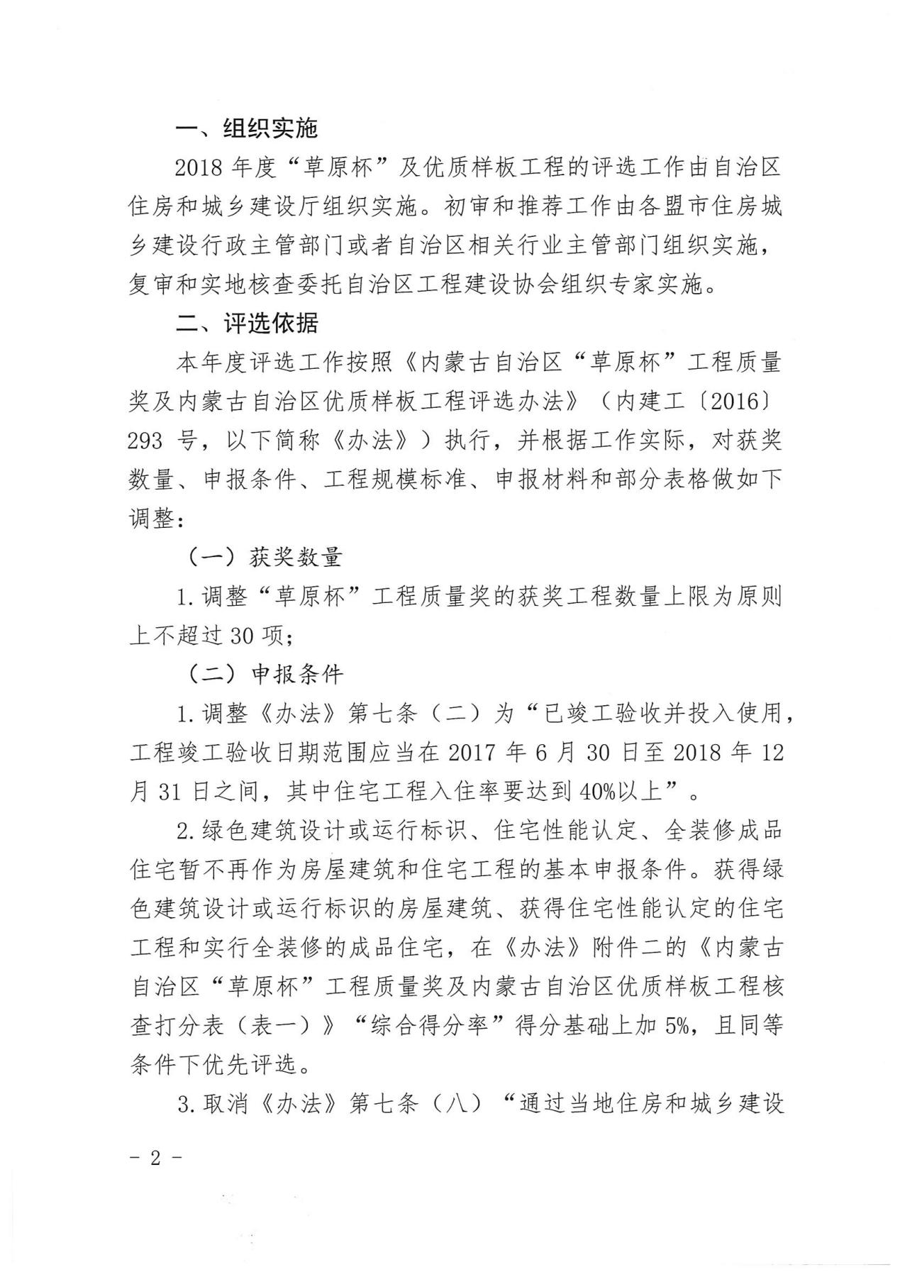 關(guān)于開展2018年度內(nèi)蒙古自治區(qū)“草原杯”工程質(zhì)量獎(jiǎng)及內(nèi)蒙古自治區(qū)優(yōu)質(zhì)樣板工程評(píng)選工作的通知
