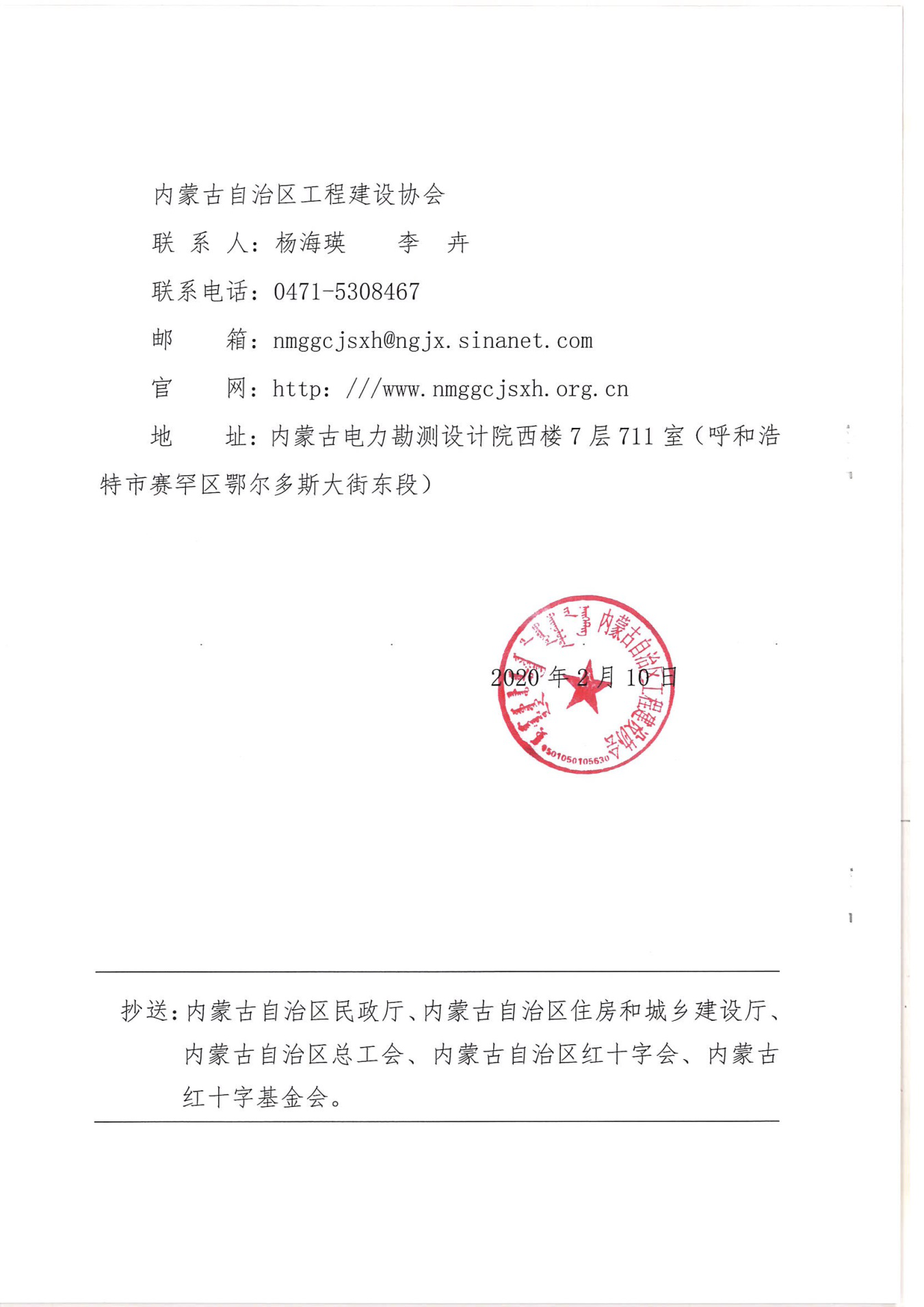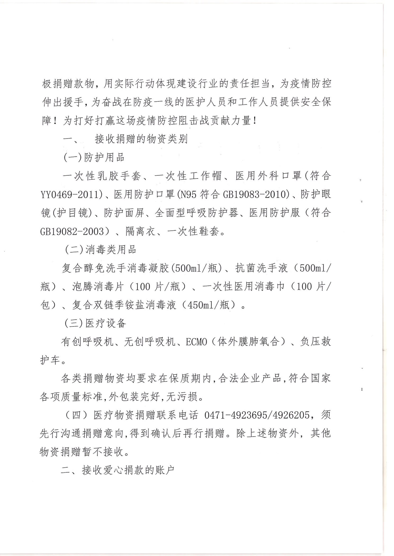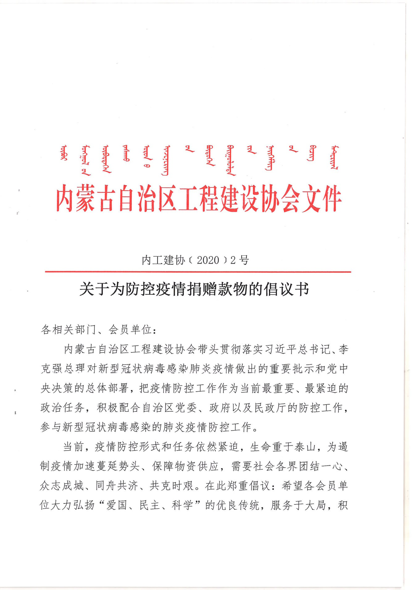 六、2月10日發(fā)出內(nèi)蒙古自治區(qū)工程建設(shè)協(xié)會(huì)《關(guān)于為防控疫情捐贈(zèng)款物的倡議書(shū)》。