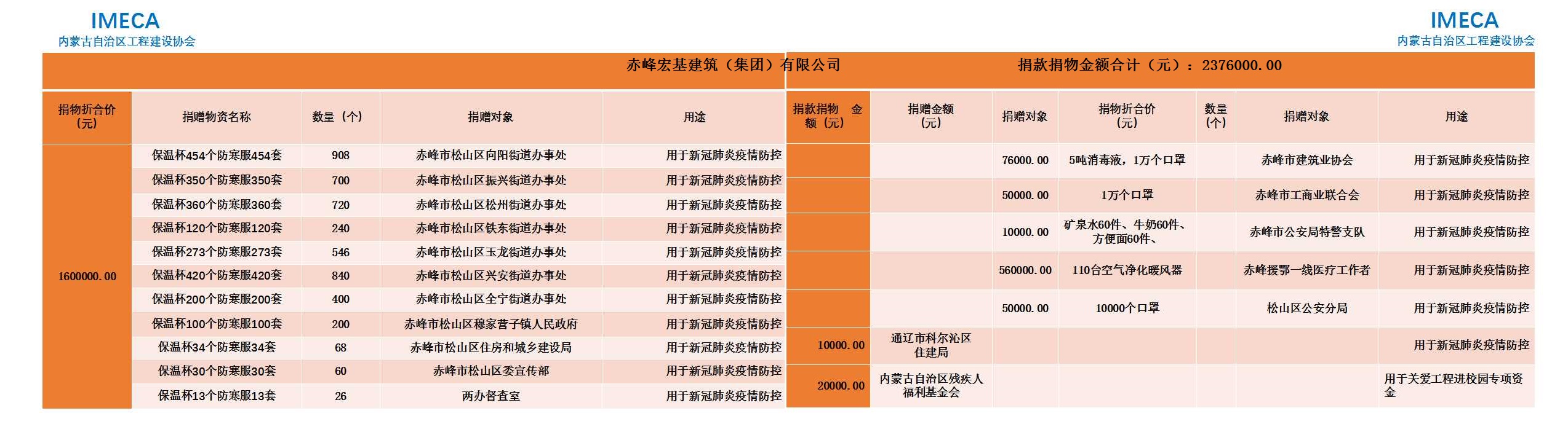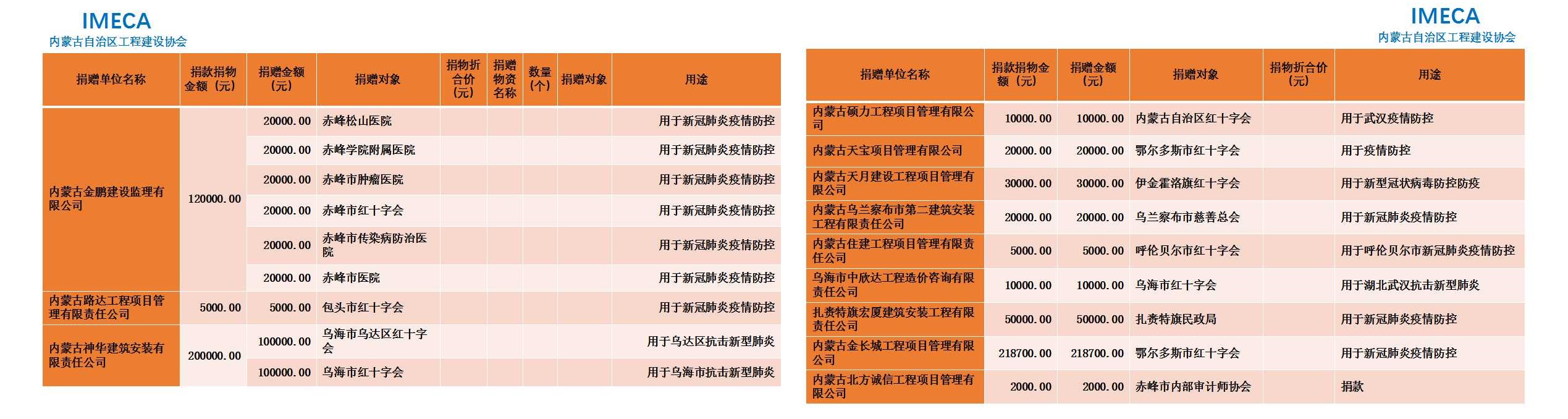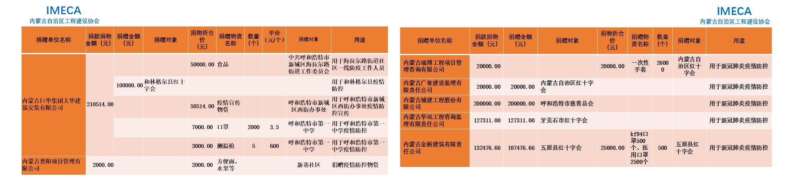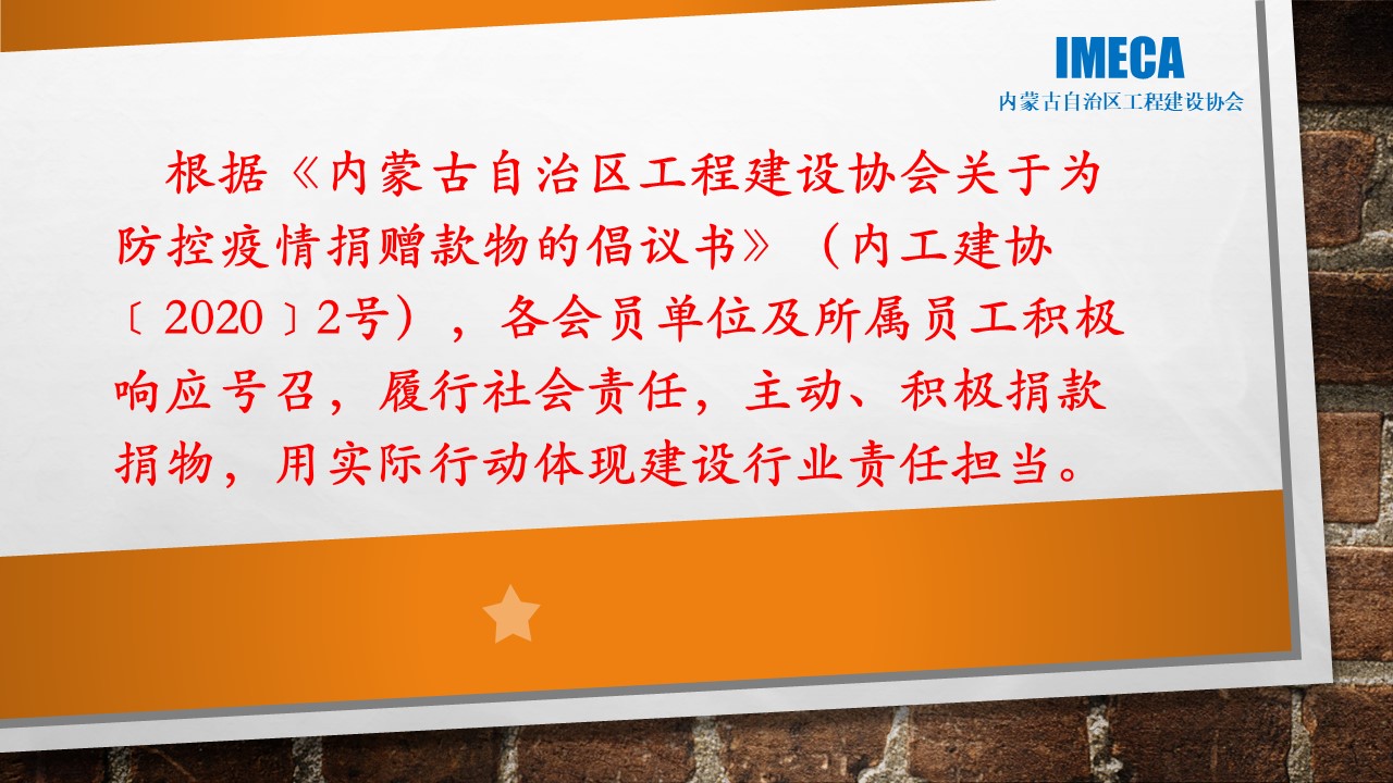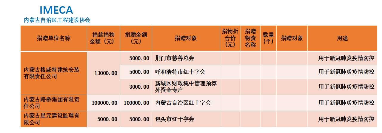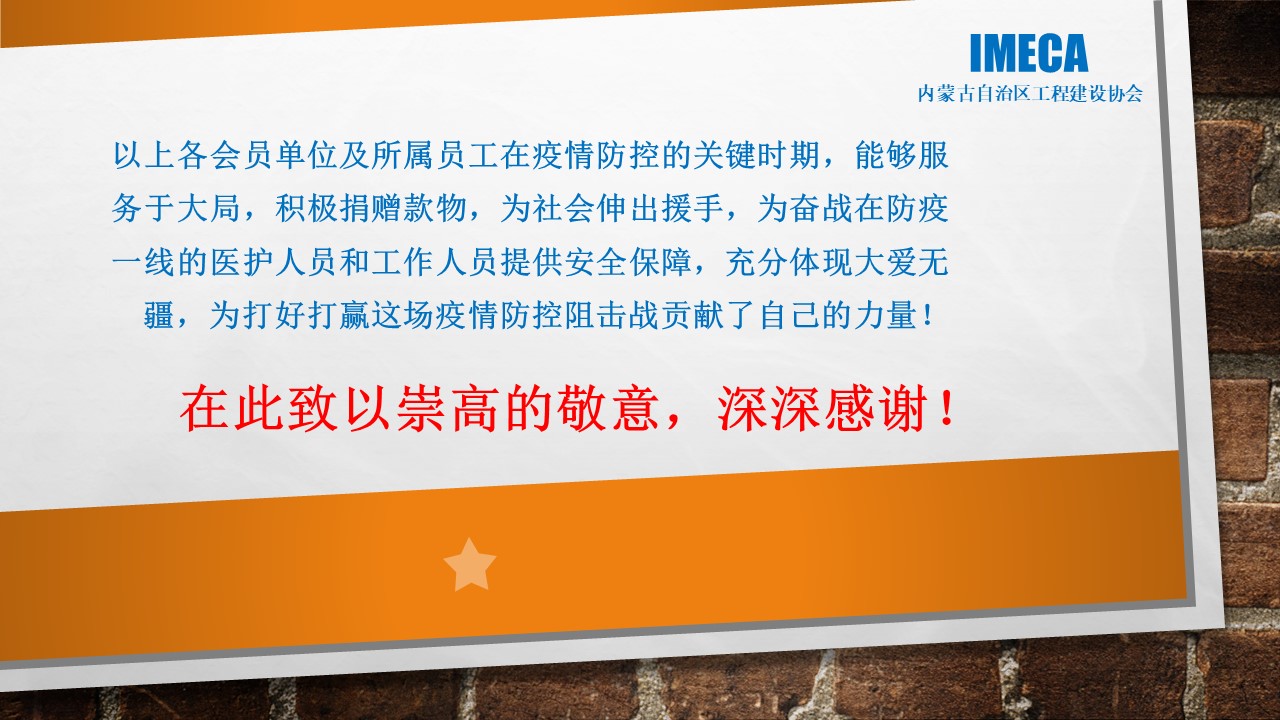 “生命重于泰山,勇于擔當社會責任”——內(nèi)蒙古自治區(qū)工程建設協(xié)會會員單位2020新型肺炎疫情防控愛心捐贈