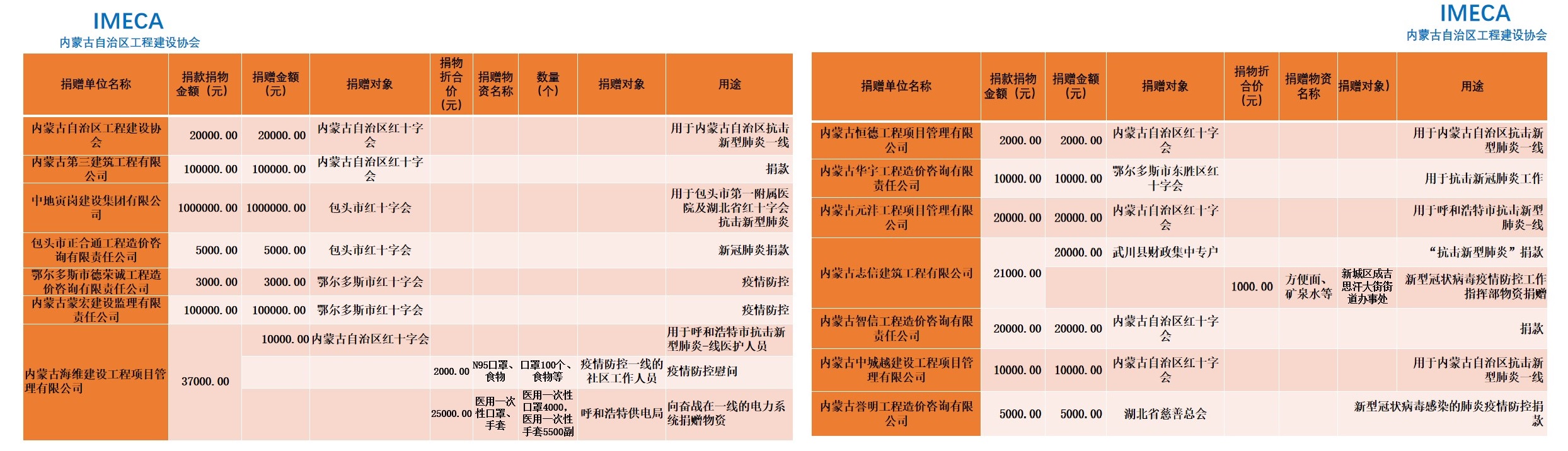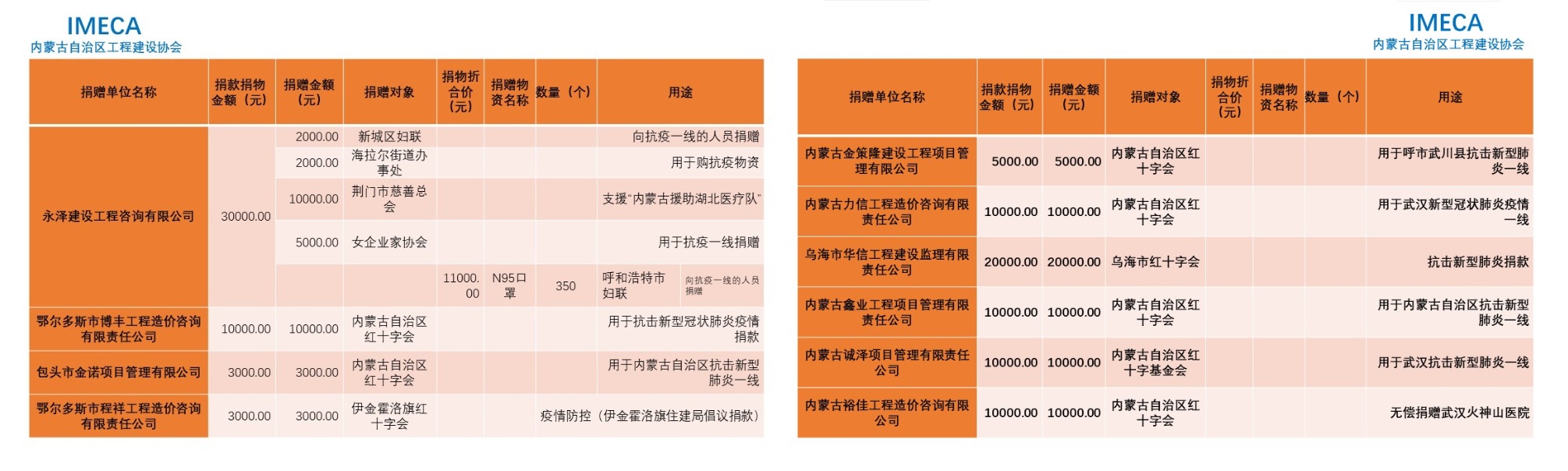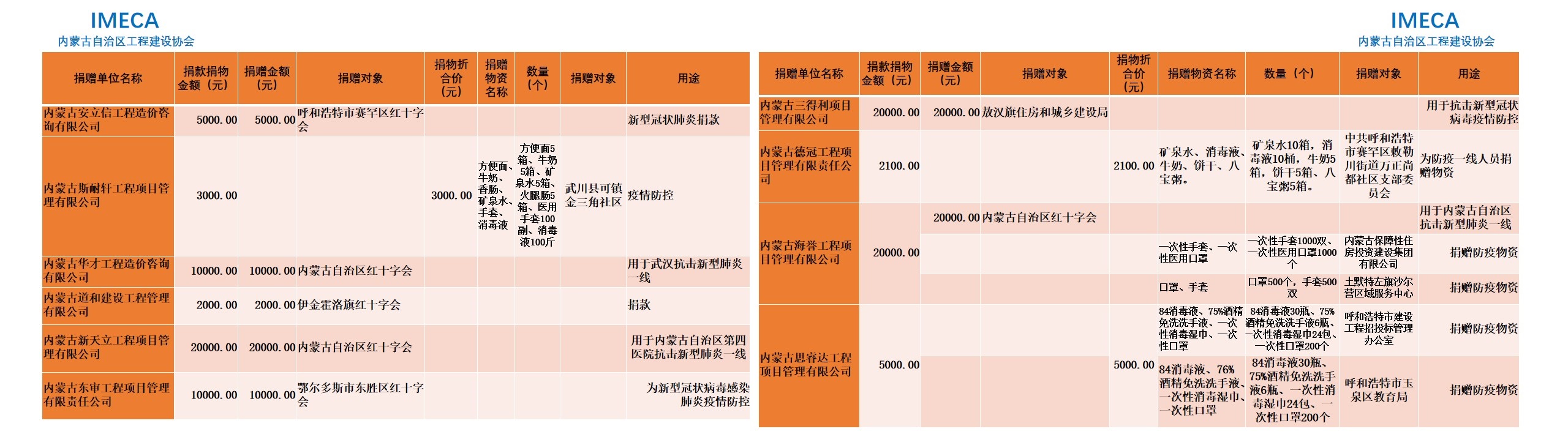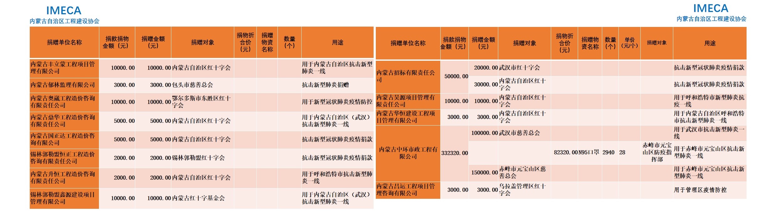 “生命重于泰山,勇于擔當社會責任”——內(nèi)蒙古自治區(qū)工程建設協(xié)會會員單位2020新型肺炎疫情防控愛心捐贈