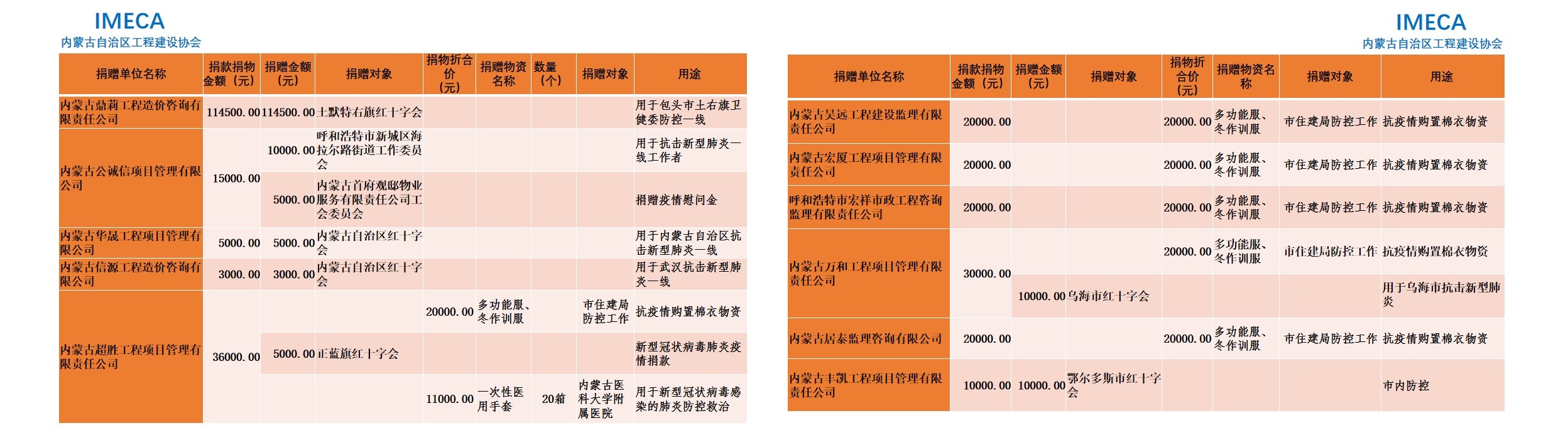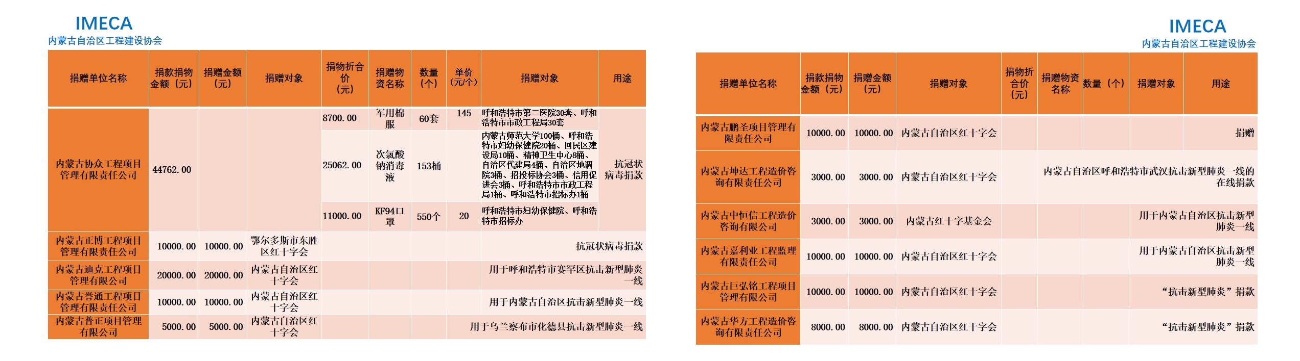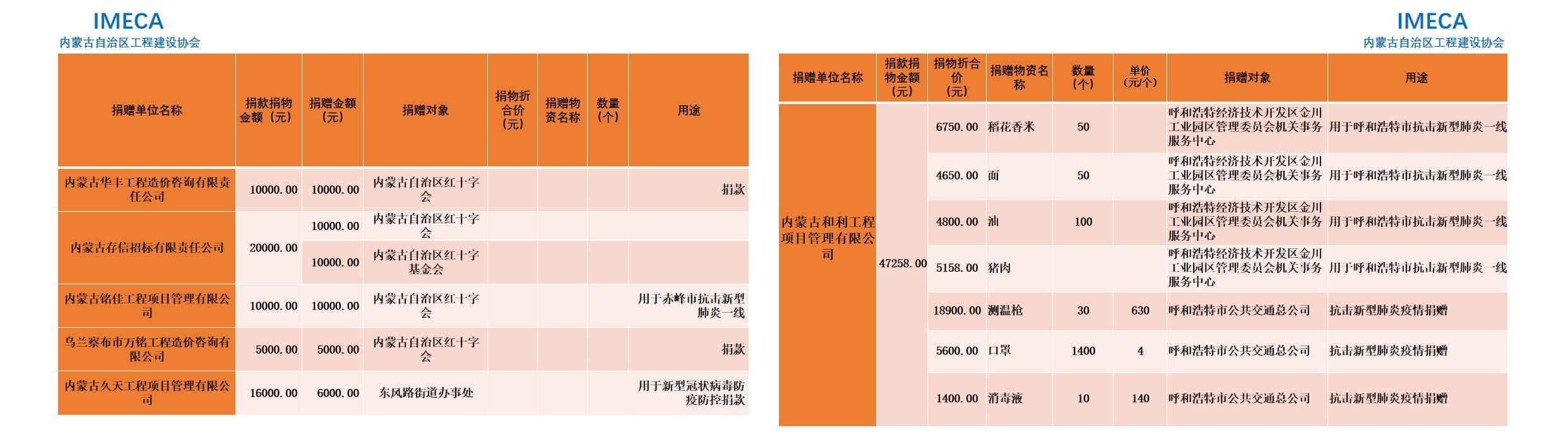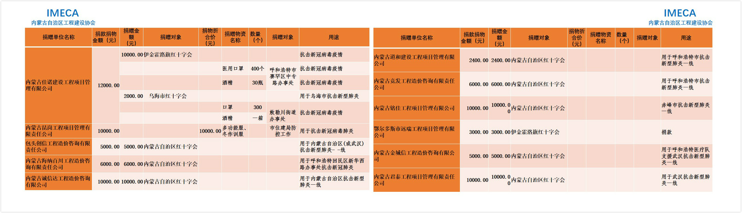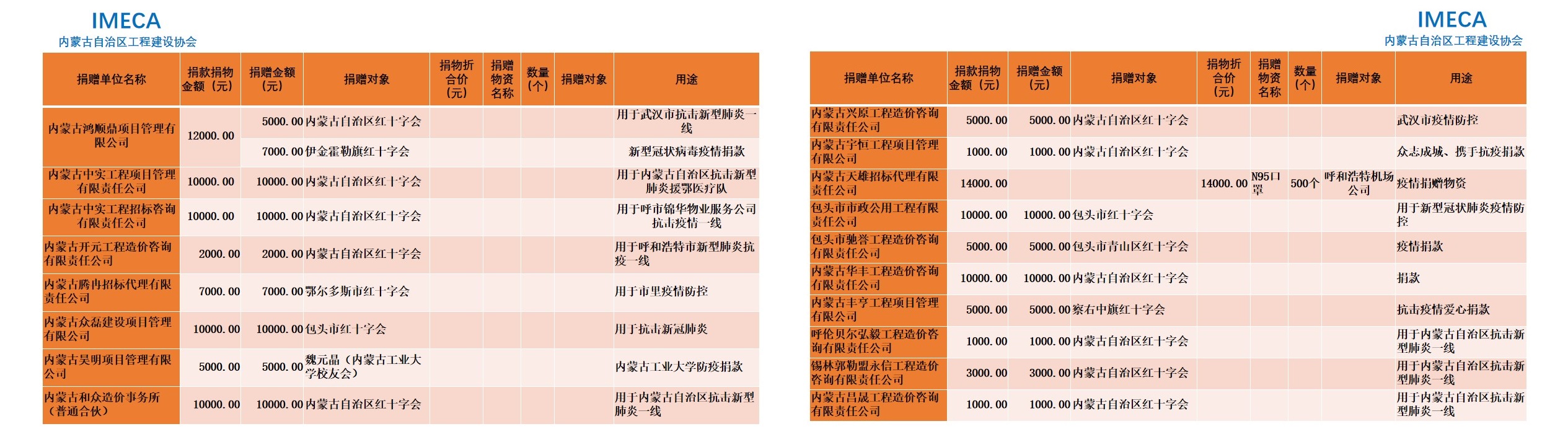 “生命重于泰山,勇于擔當社會責任”——內(nèi)蒙古自治區(qū)工程建設協(xié)會會員單位2020新型肺炎疫情防控愛心捐贈