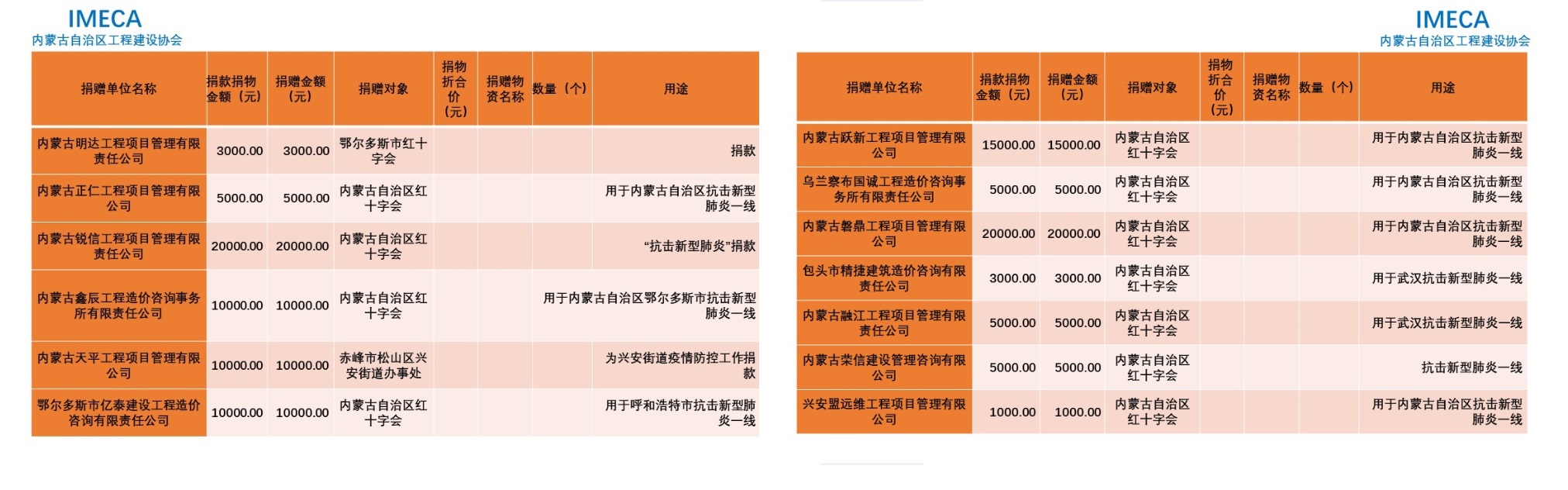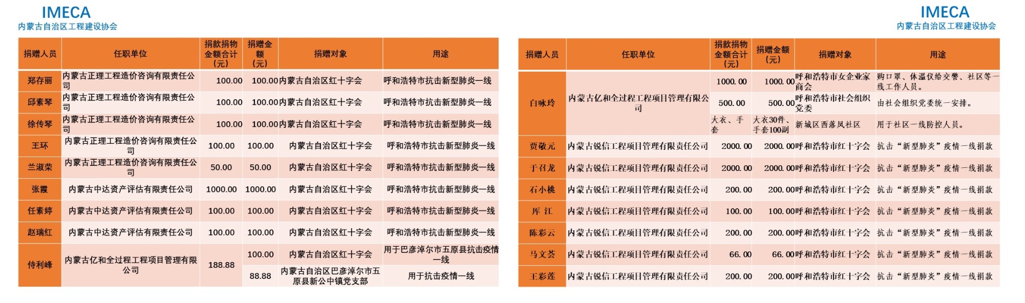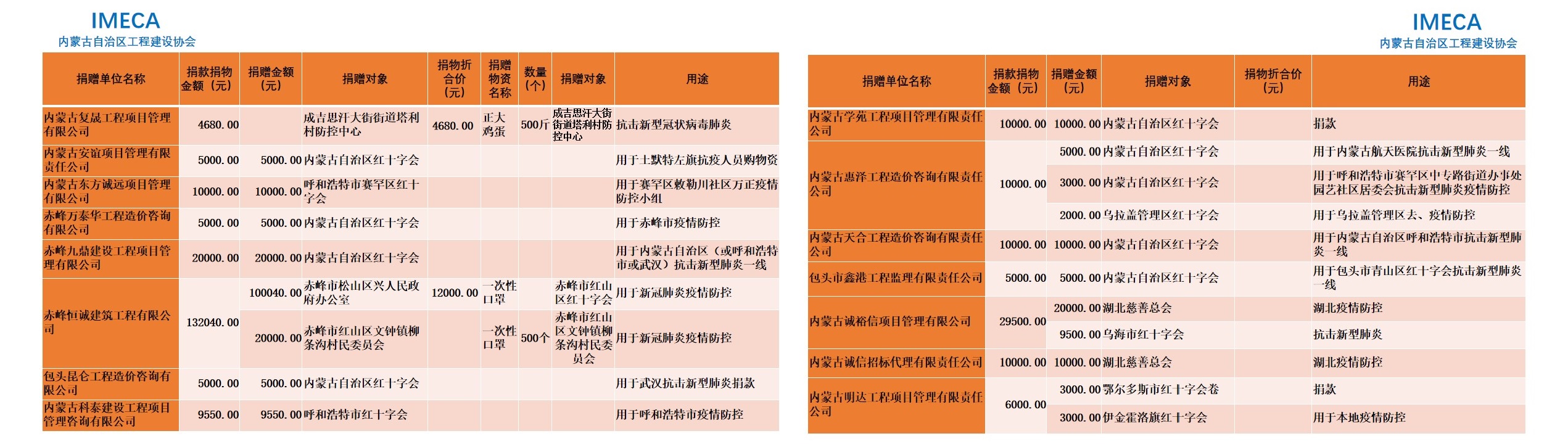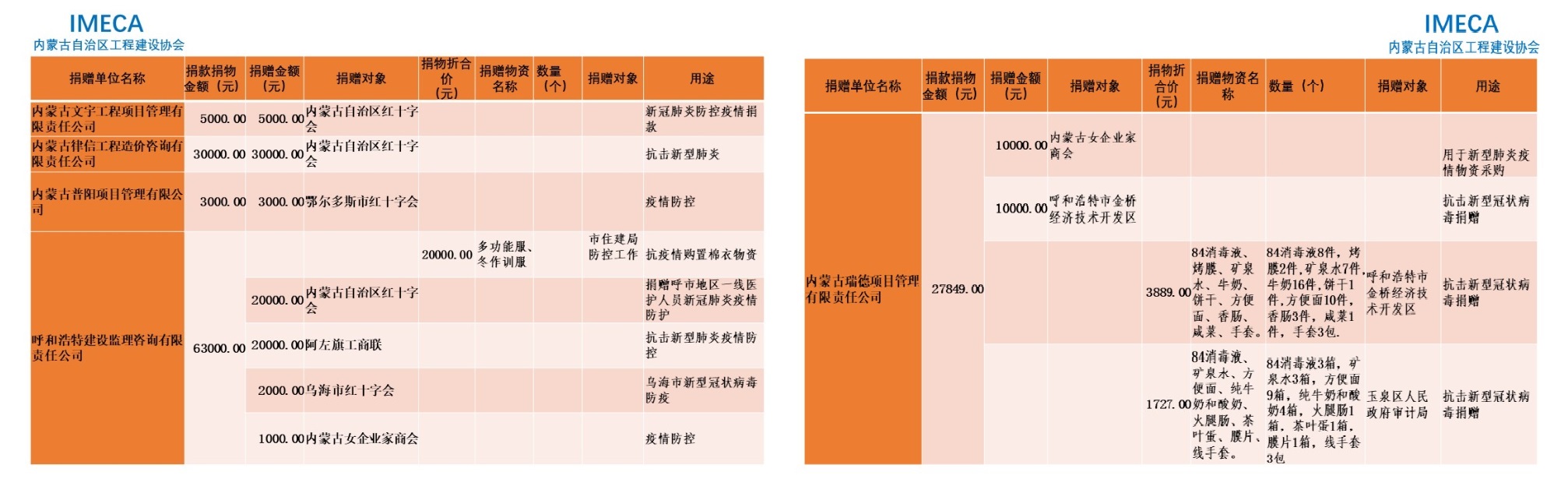 “生命重于泰山,勇于擔當社會責任”——內(nèi)蒙古自治區(qū)工程建設協(xié)會會員單位2020新型肺炎疫情防控愛心捐贈