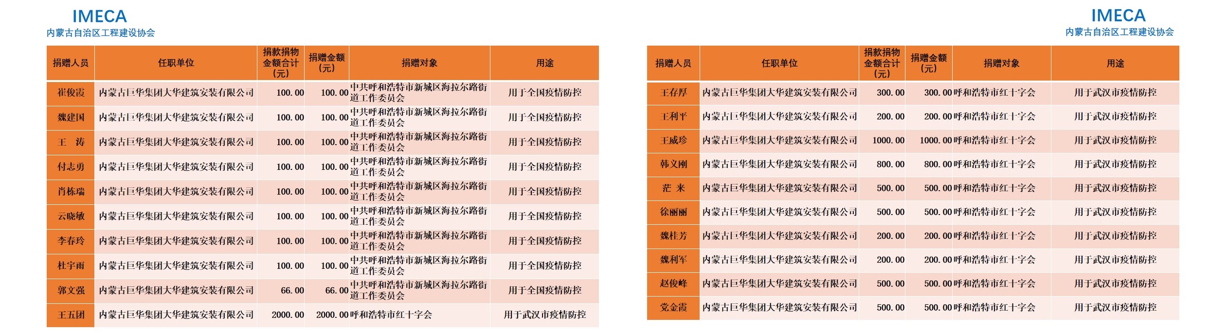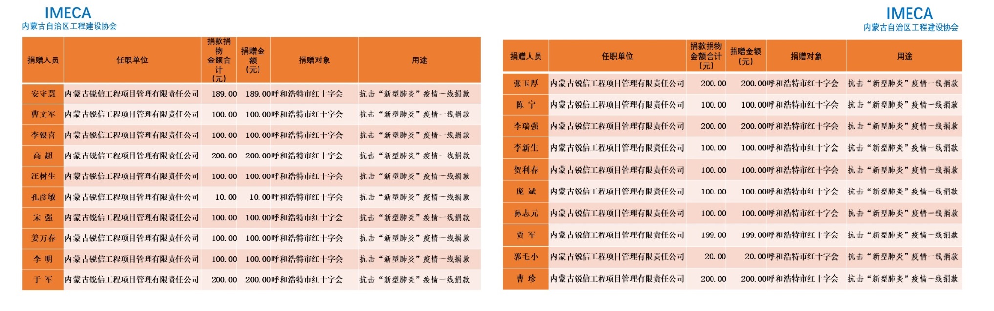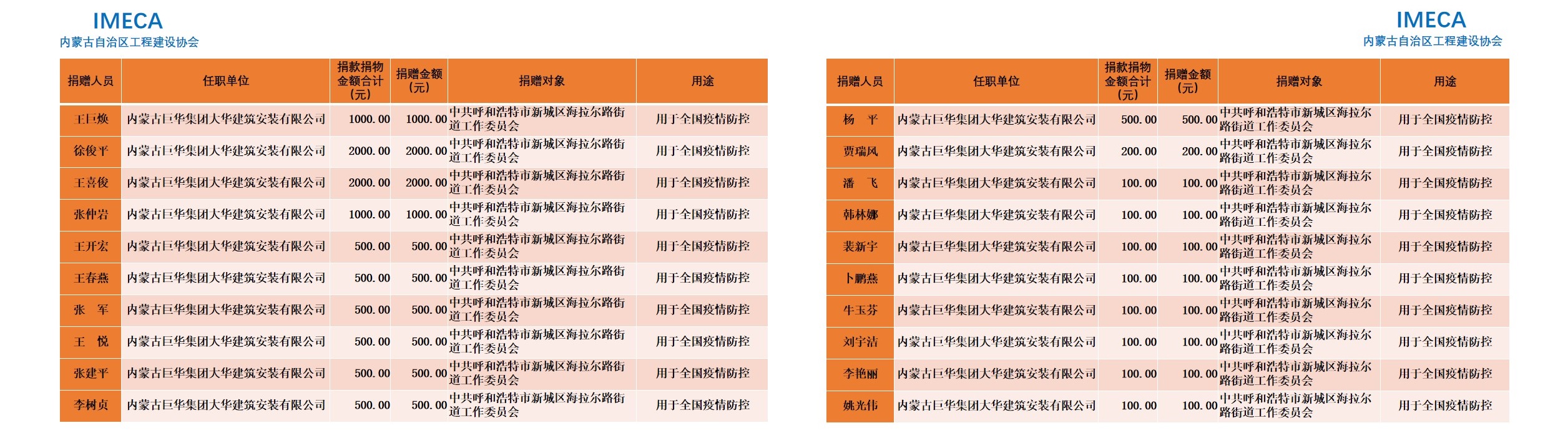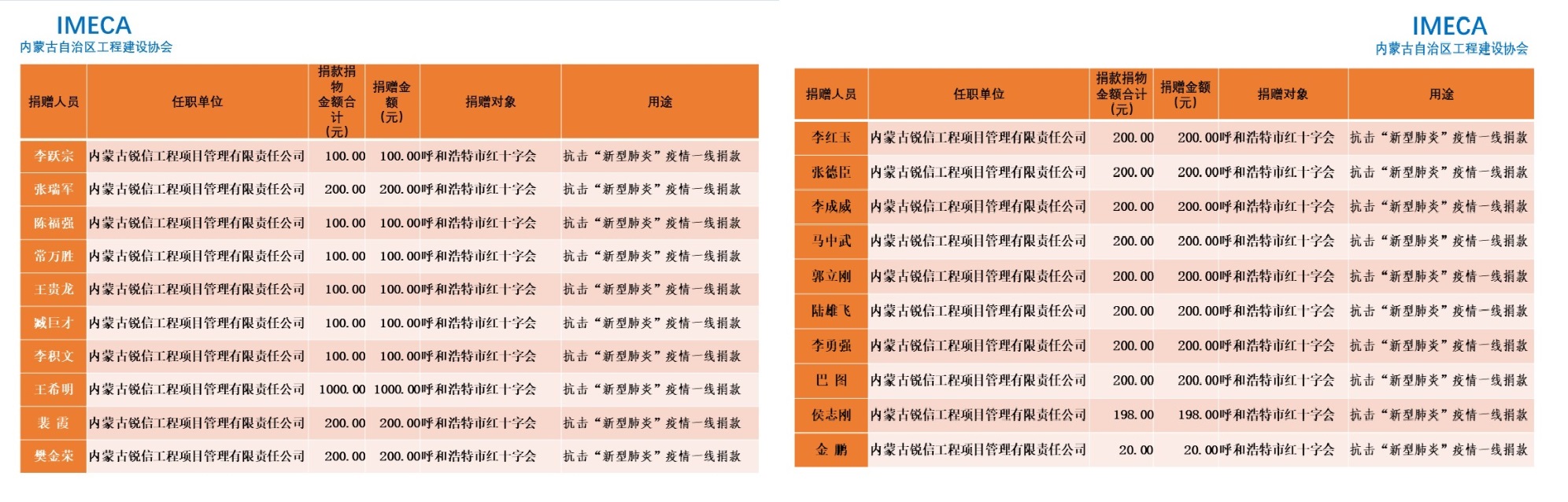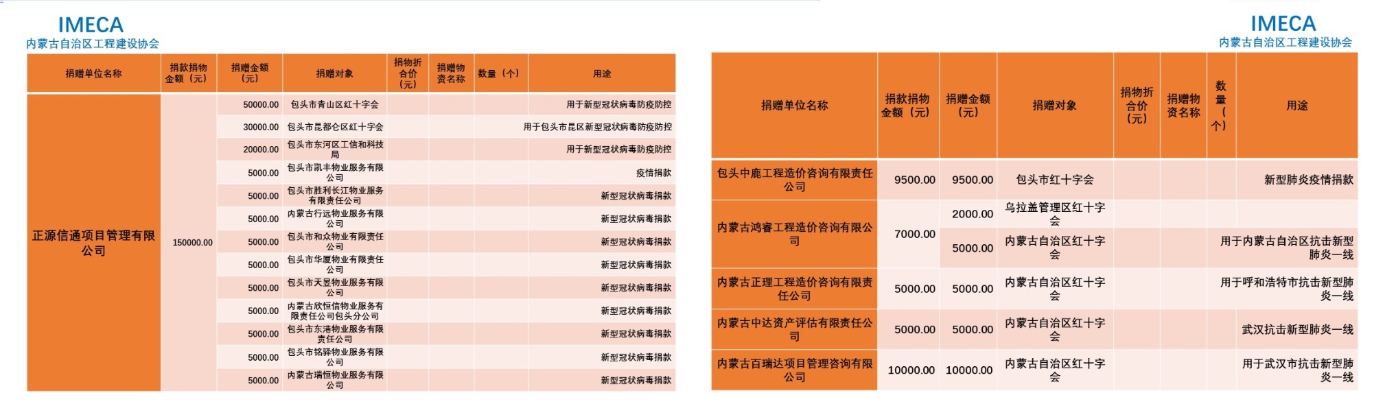 “生命重于泰山,勇于擔當社會責任”——內(nèi)蒙古自治區(qū)工程建設協(xié)會會員單位2020新型肺炎疫情防控愛心捐贈