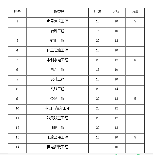 綜合資質(zhì)、事務(wù)所資質(zhì)不分級別。專業(yè)資質(zhì)分為甲級、乙級;其中,房屋建筑、水利水電、公路和市政公用專業(yè)資質(zhì)可設(shè)立丙級。