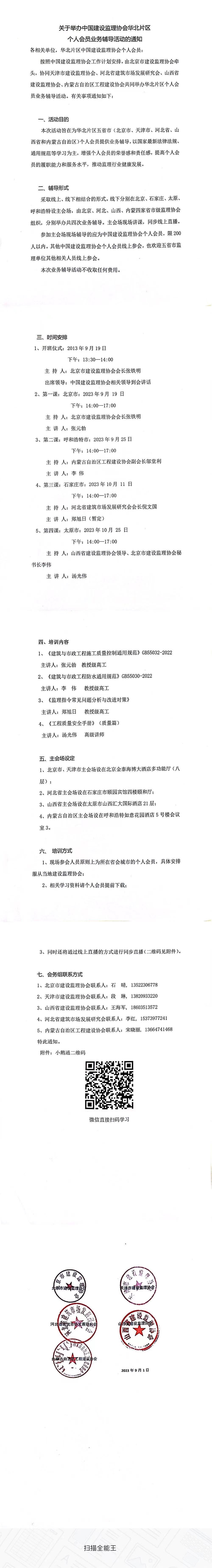 附件:1、《關(guān)于舉辦中國建設(shè)監(jiān)理協(xié)會(huì)華北片區(qū)個(gè)人會(huì)員業(yè)務(wù)輔導(dǎo)活動(dòng)的通知》